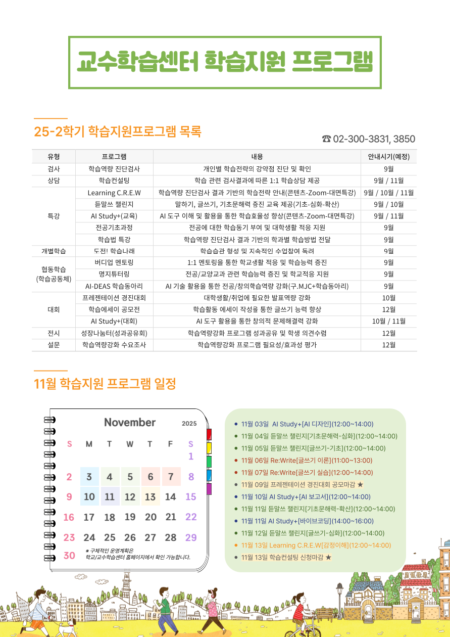 [일정표] 2025학년도 2학기 교수학습센터 학습지원 프로그램(11월)
